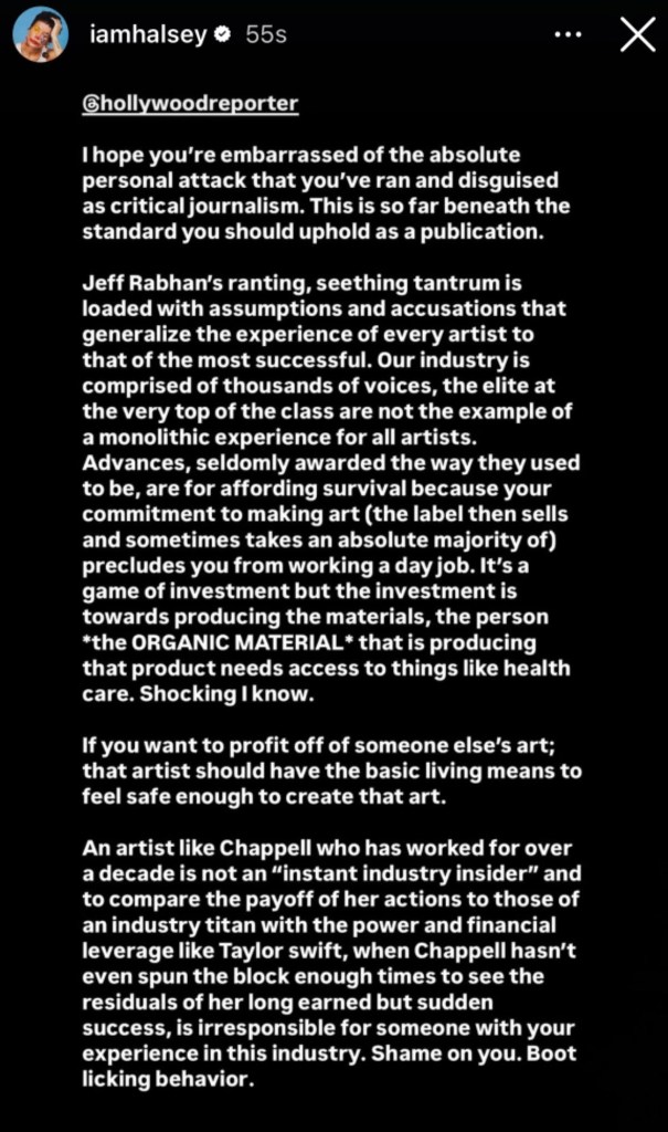 His article received a lot of backlash, but on February 6th I wrote my response: Dear Jeff. Since then, both Halsey and Chappell Roan have made responses to Rabhan.